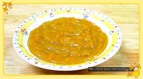 *재료... 카레가루, 당근, 야채, 양파, 전분가루, 식용유