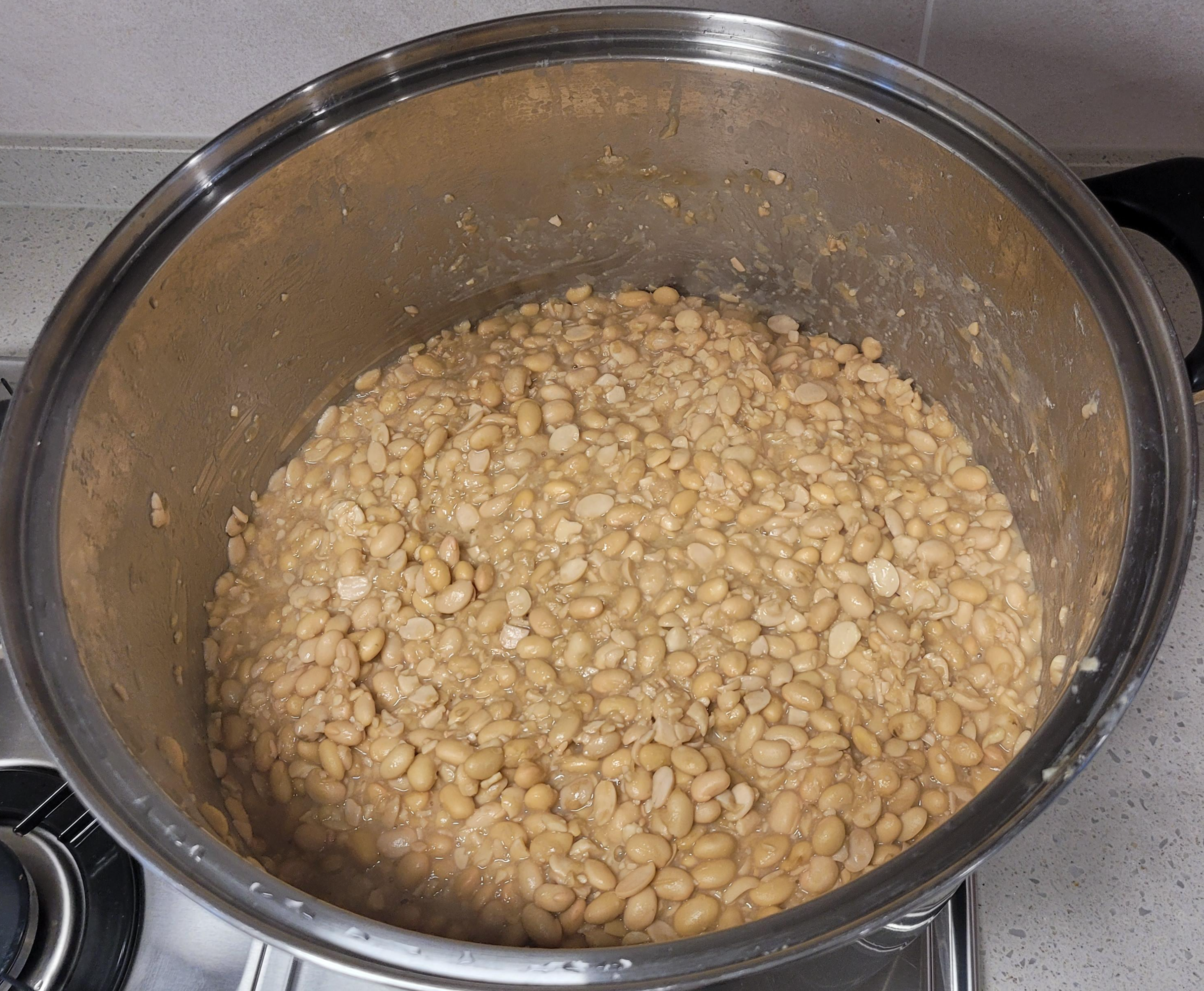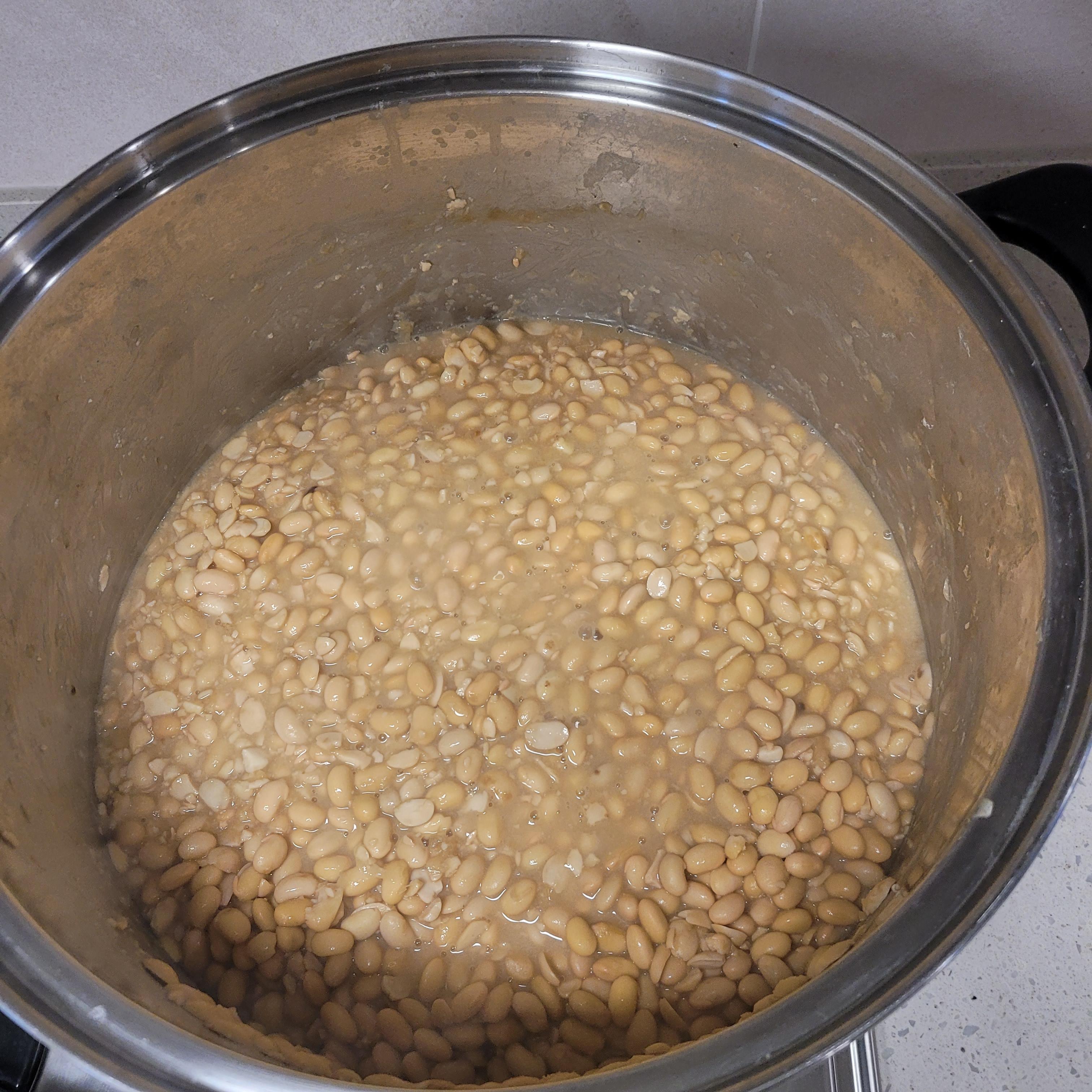 6. 콩이 붉그레 하게 삶아졌고, 엄지와 검지로 눌러보니 완전 뭉그러 지며 먹어보니 달큰하고 맛있었어요.