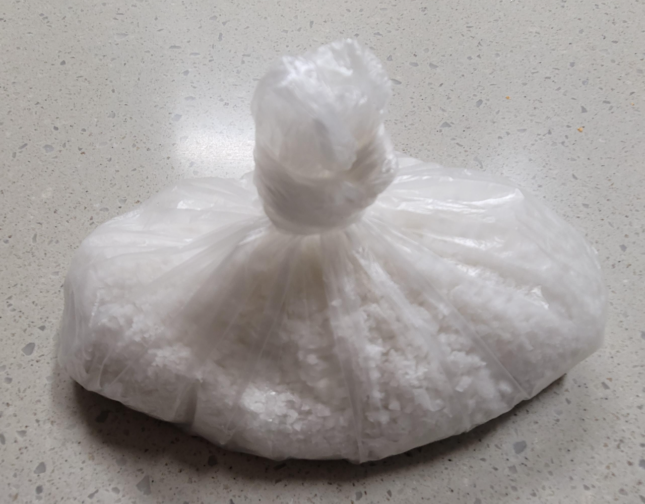12. 그 위에 비닐팩을 덮고 천일염을 뿌려주면 곰팡이 나는 것을 방지하는 방부제 역할을 한답니다.