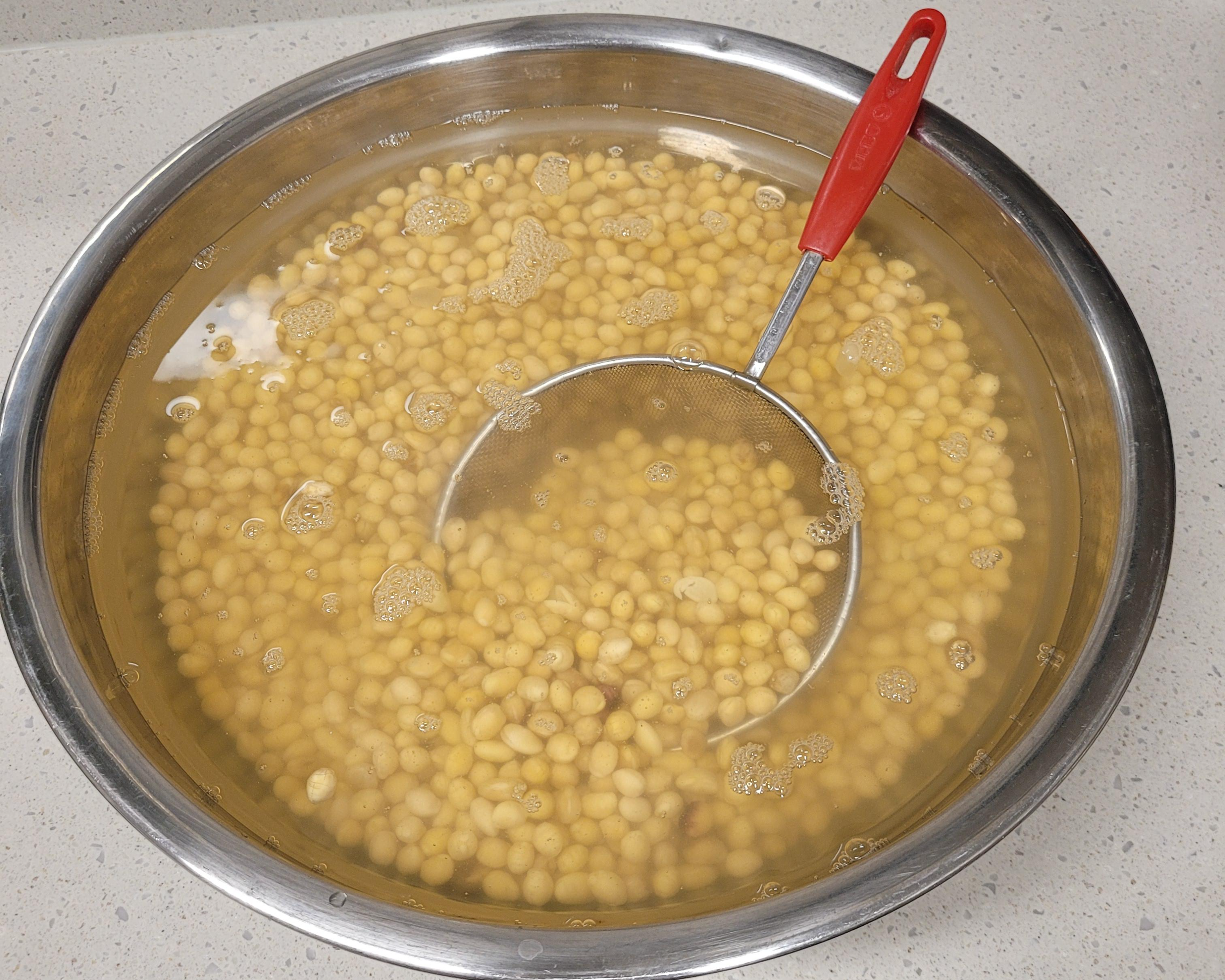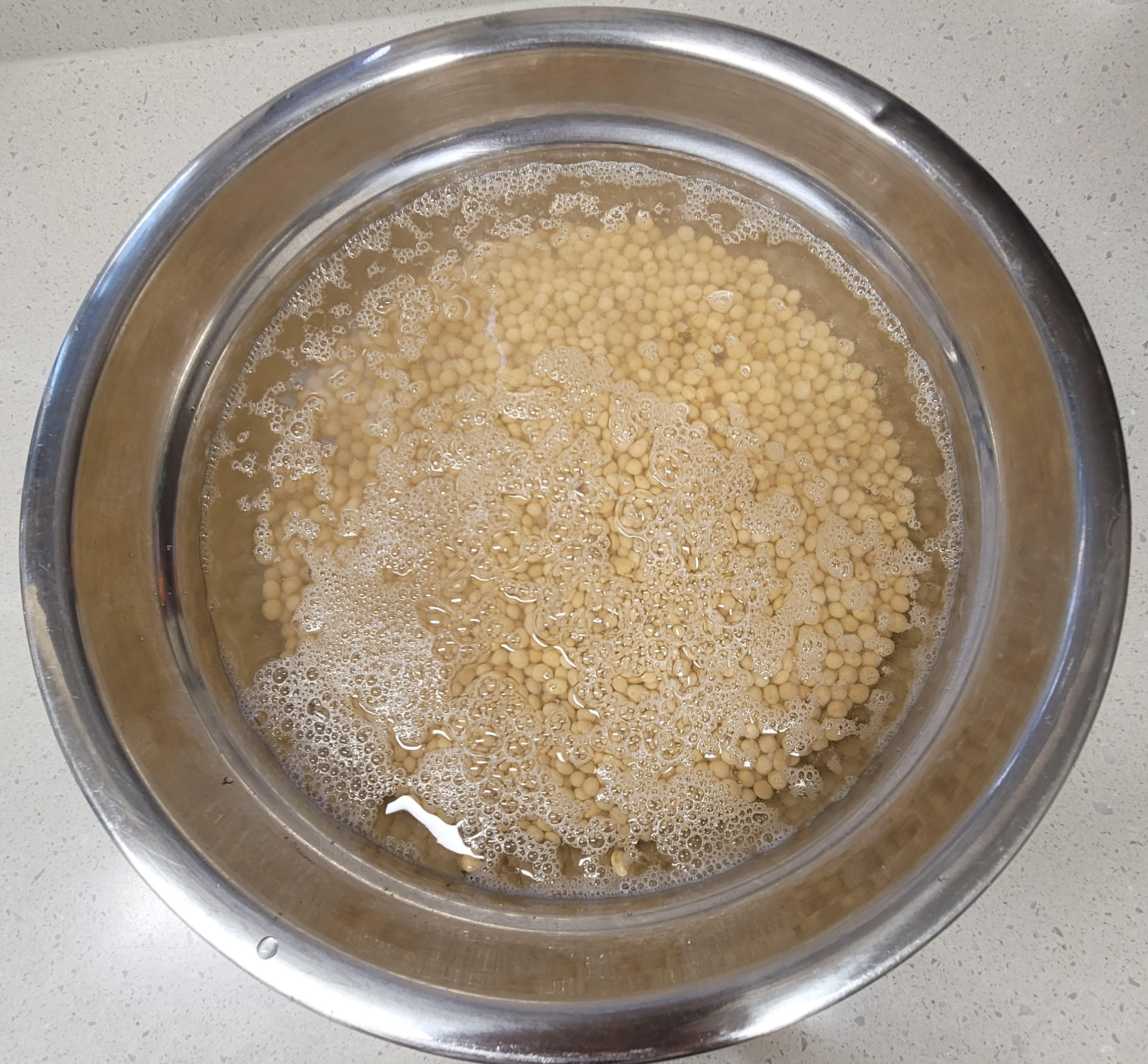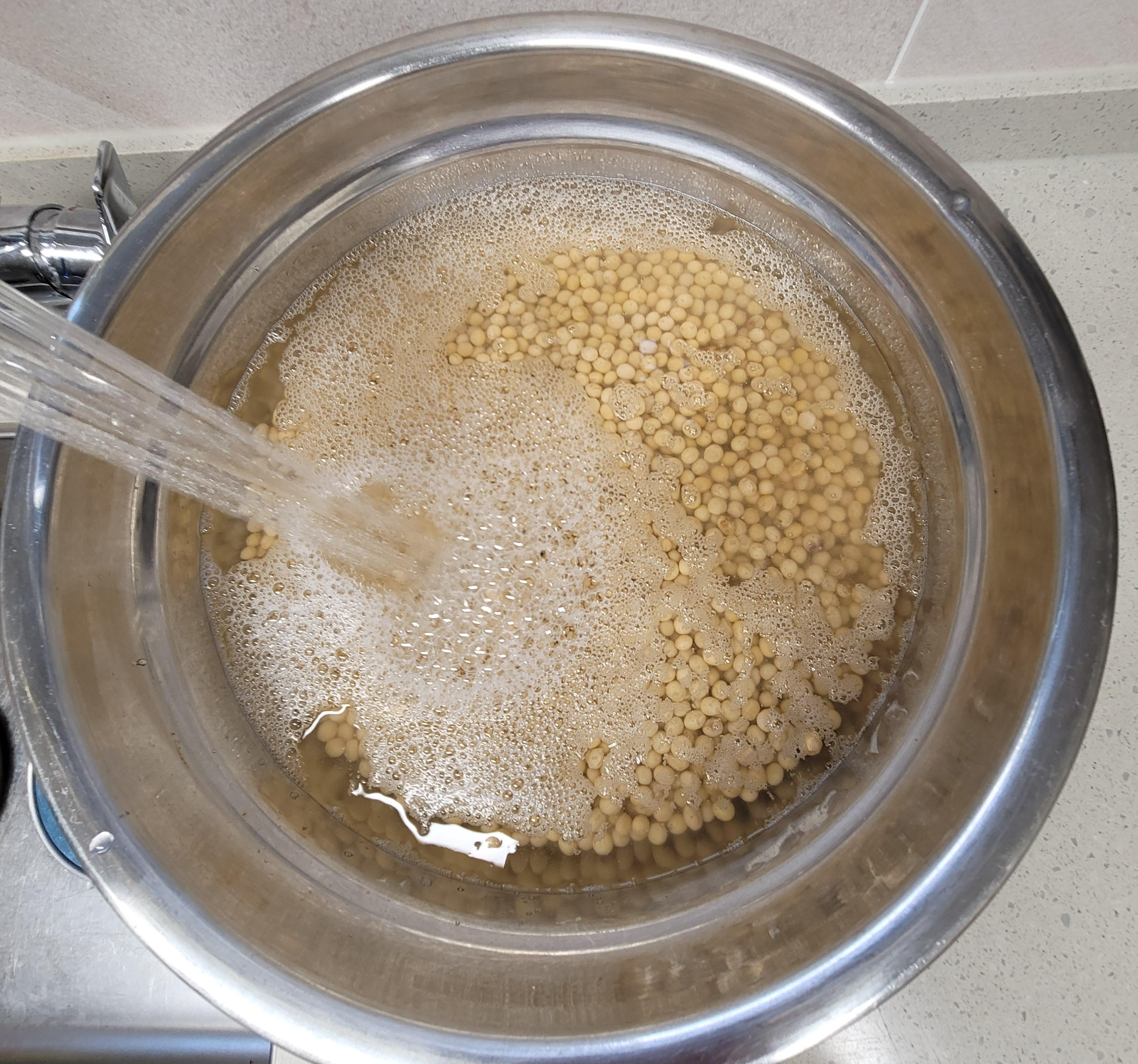 1. 콩 2kg를 박박 문질러서 씻어 물에 담가서 6시간 이상 불립니다.