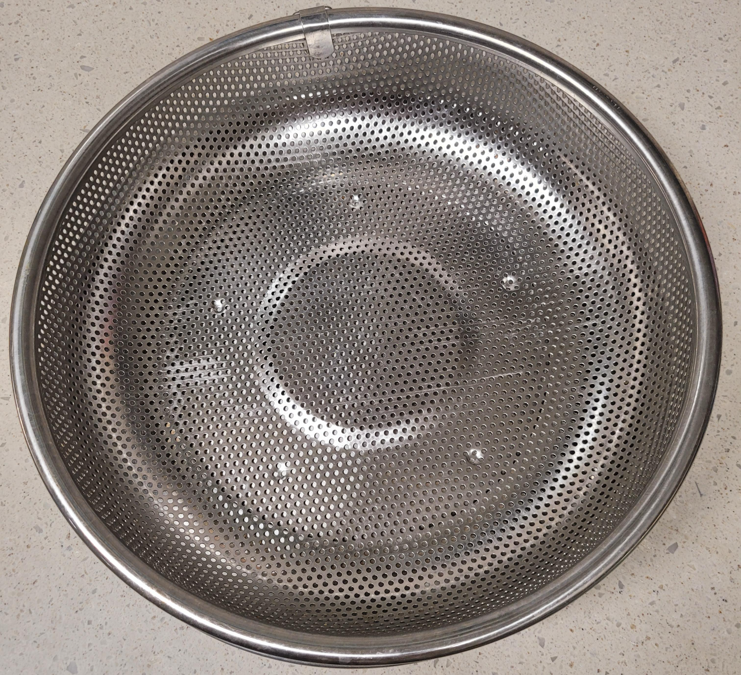7. 채반에 받쳐서 콩물을 내리고 콩과 콩물을 분리합니다.