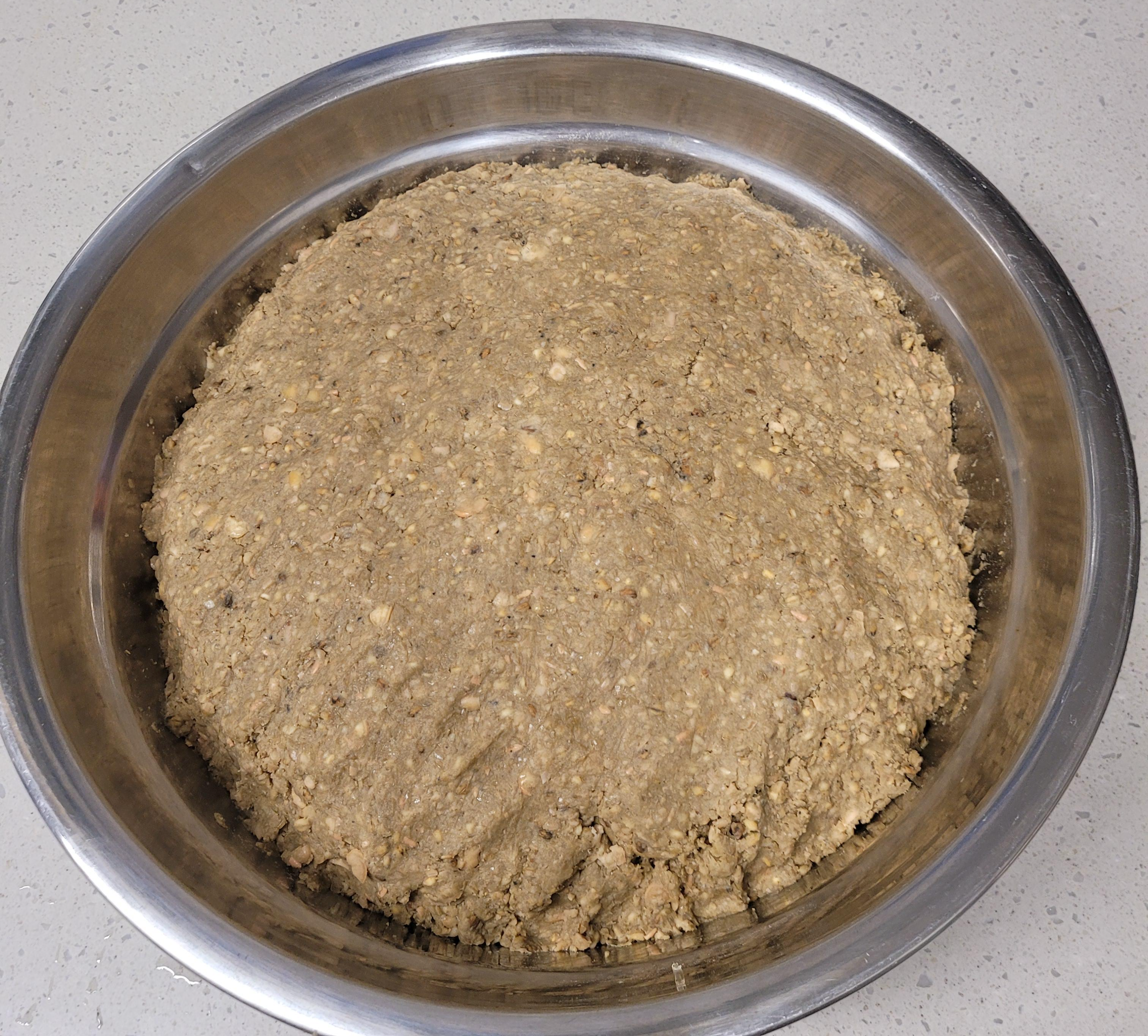 8. 잘 으깬 콩에 보리효소와 소금을 넣고, 삶은 콩물을 넣어 버무립니다.