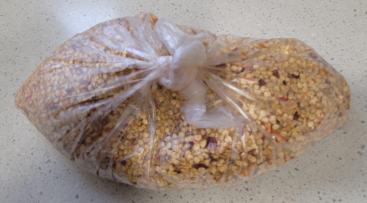 11. 용기에 다 담고 나서 마지막으로 남은 소금과 고추씨를 펴서 넣어 주었습니다.